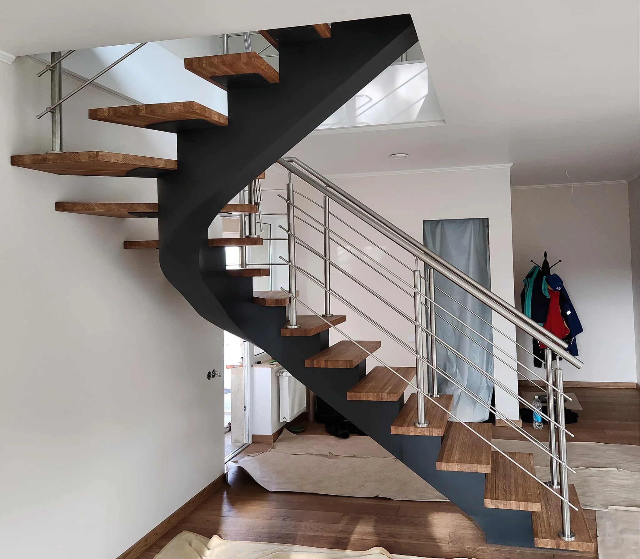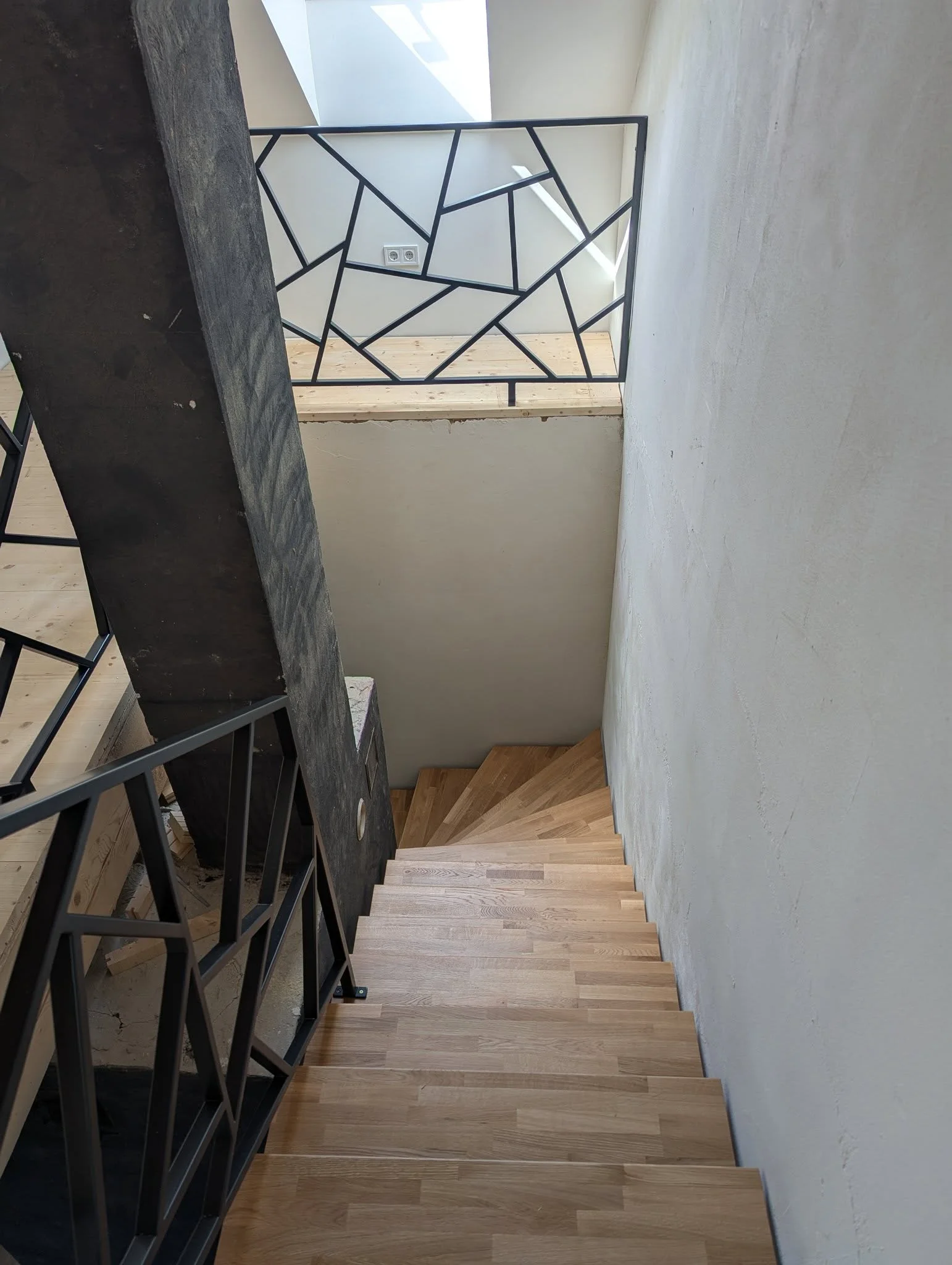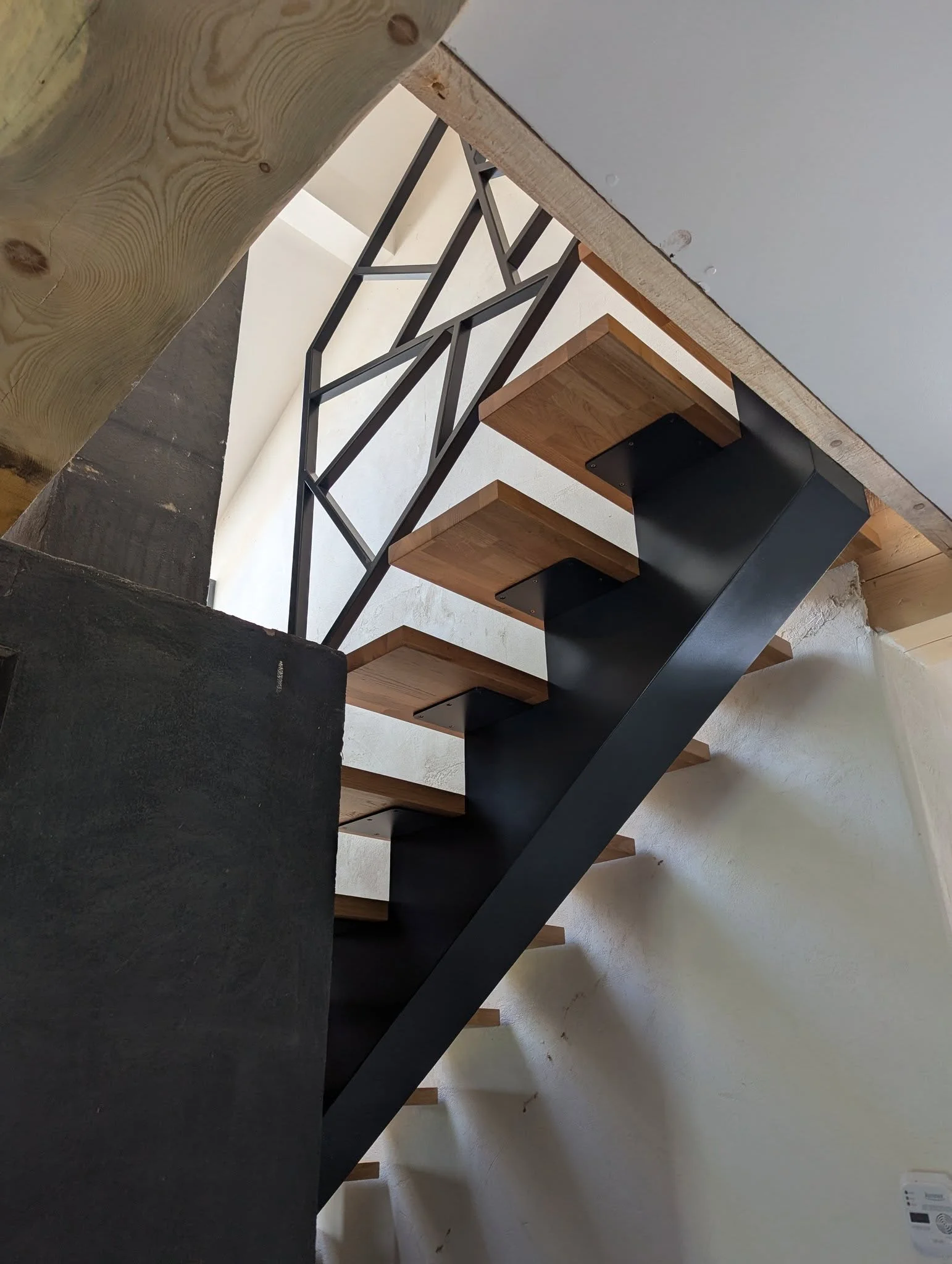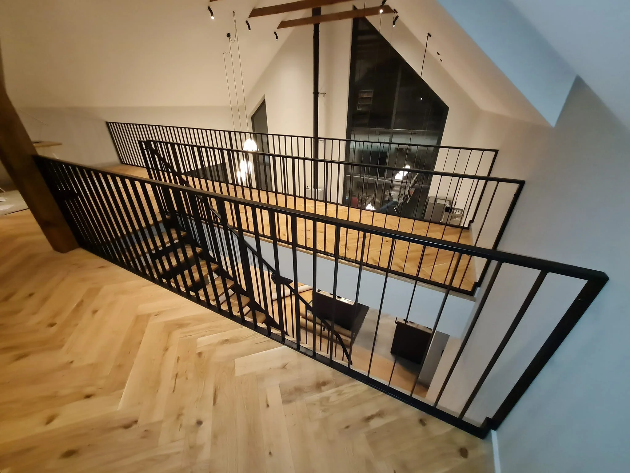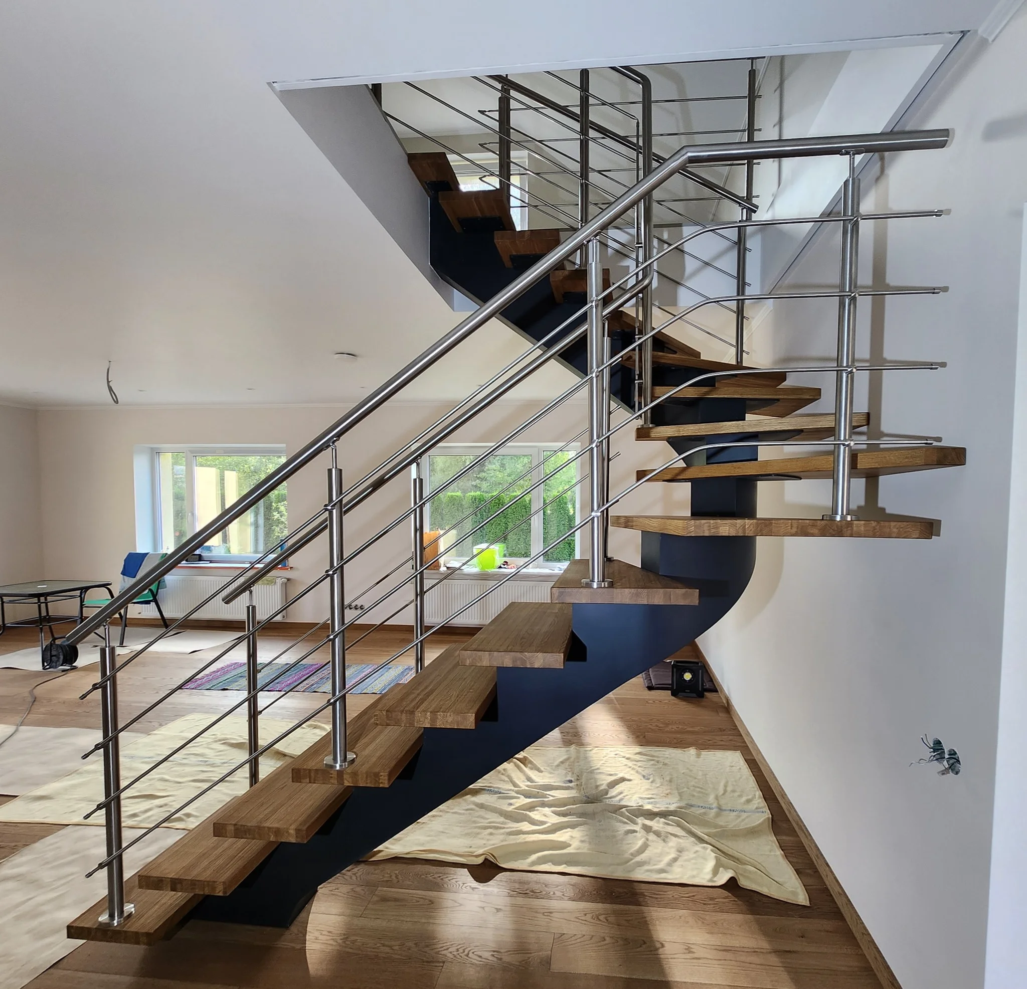 Šajā objektā ir izgatavotas un uzstādītas kāpnes: nesošā konstrukcija veidota no pulverkrāsota tērauda, pakāpieni – no masīvkoka, precīzi pieskaņoti telpas grīdai, savukārt margas veidotas minimālistiskā stilā. Konstrukcija ir atvērta, vizuāli viegla. Darbs izpildīts ar uzsvaru uz līnijām un detaļu saskaņu ar interjeru, bez liekiem dekoratīviem elementiem, atstājot materiālu kvalitāti kā galveno akcentu.