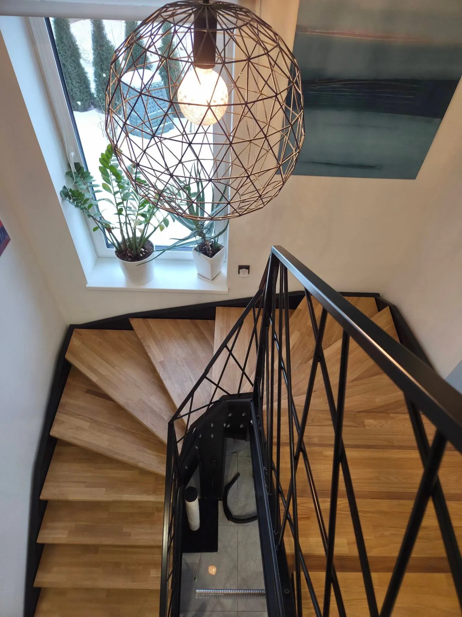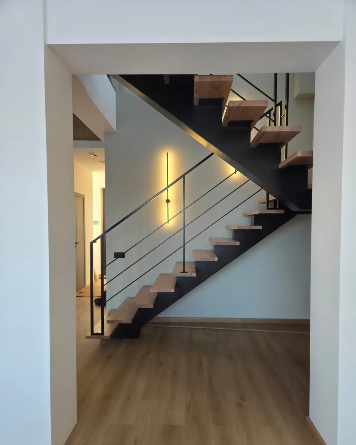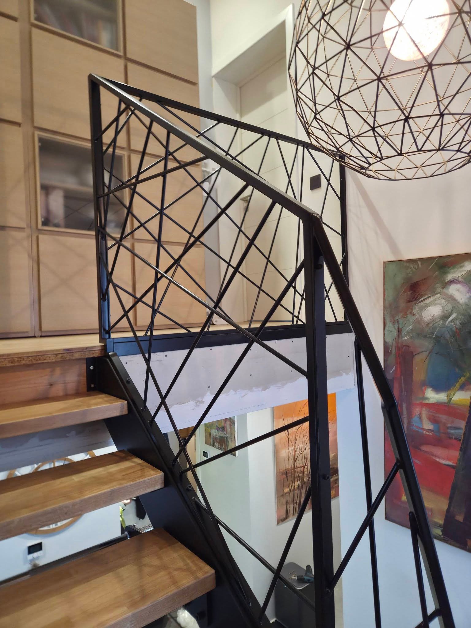 Šajā objektā ir izgatavotas un uzstādītas kāpnes: nesošā konstrukcija veidota no pulverkrāsota tērauda, pakāpieni – no masīvkoka, precīzi pieskaņoti telpas grīdai, savukārt margas veidotas minimālistiskā stilā. Konstrukcija ir atvērta, vizuāli viegla. Darbs izpildīts ar uzsvaru uz līnijām un detaļu saskaņu ar interjeru, bez liekiem dekoratīviem elementiem, atstājot materiālu kvalitāti kā galveno akcentu.