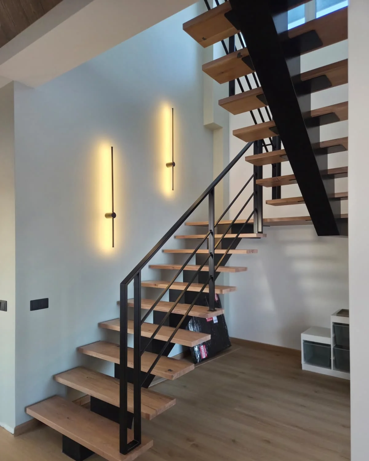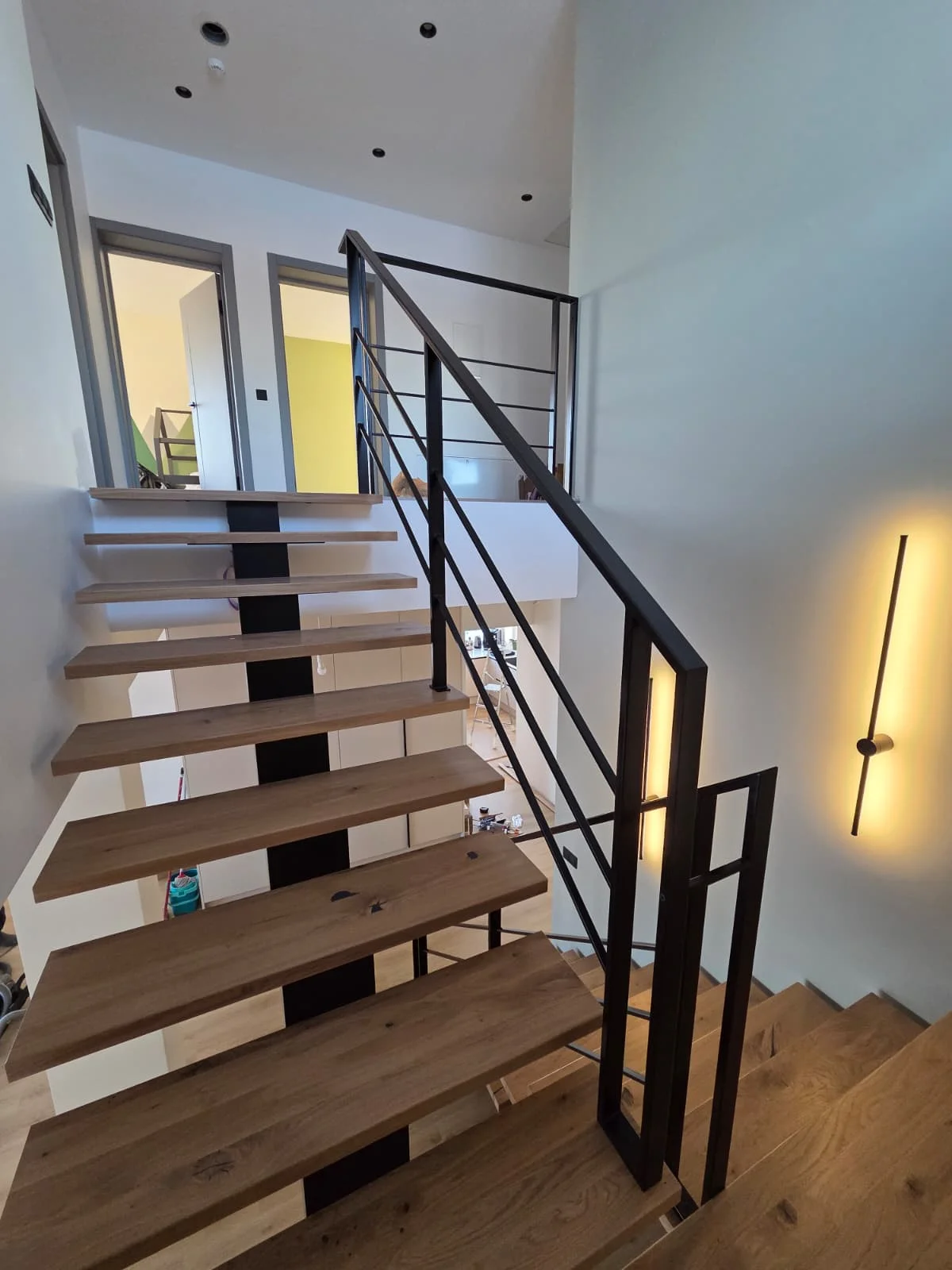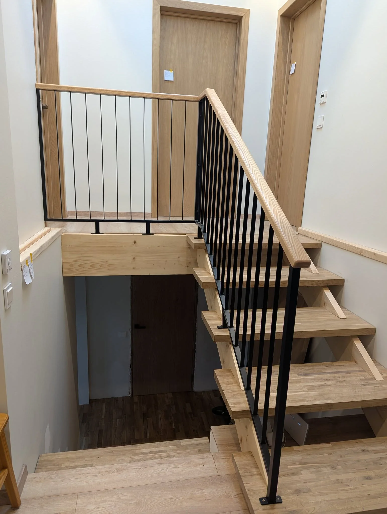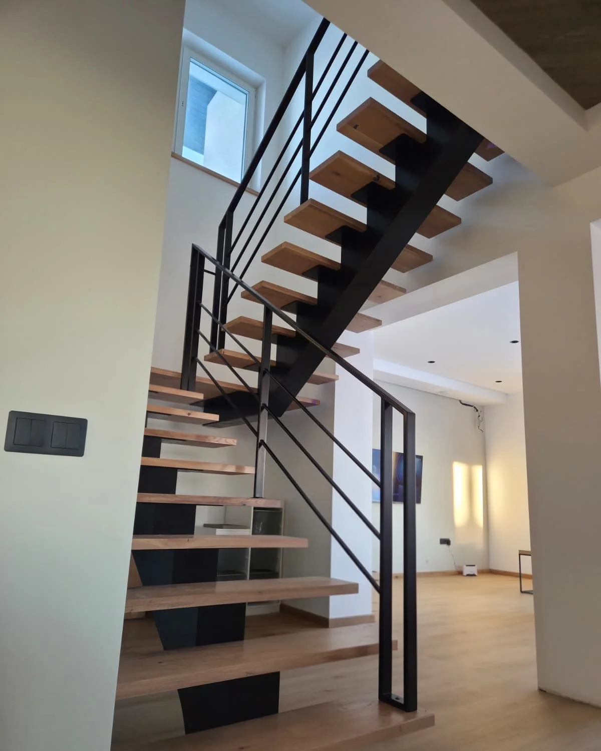 Šajā objektā ir izgatavotas un uzstādītas kāpnes: nesošā konstrukcija veidota no pulverkrāsota tērauda, pakāpieni – no masīvkoka, precīzi pieskaņoti telpas grīdai, savukārt margas veidotas minimālistiskā stilā. Konstrukcija ir atvērta, vizuāli viegla. Darbs izpildīts ar uzsvaru uz līnijām un detaļu saskaņu ar interjeru, bez liekiem dekoratīviem elementiem, atstājot materiālu kvalitāti kā galveno akcentu.